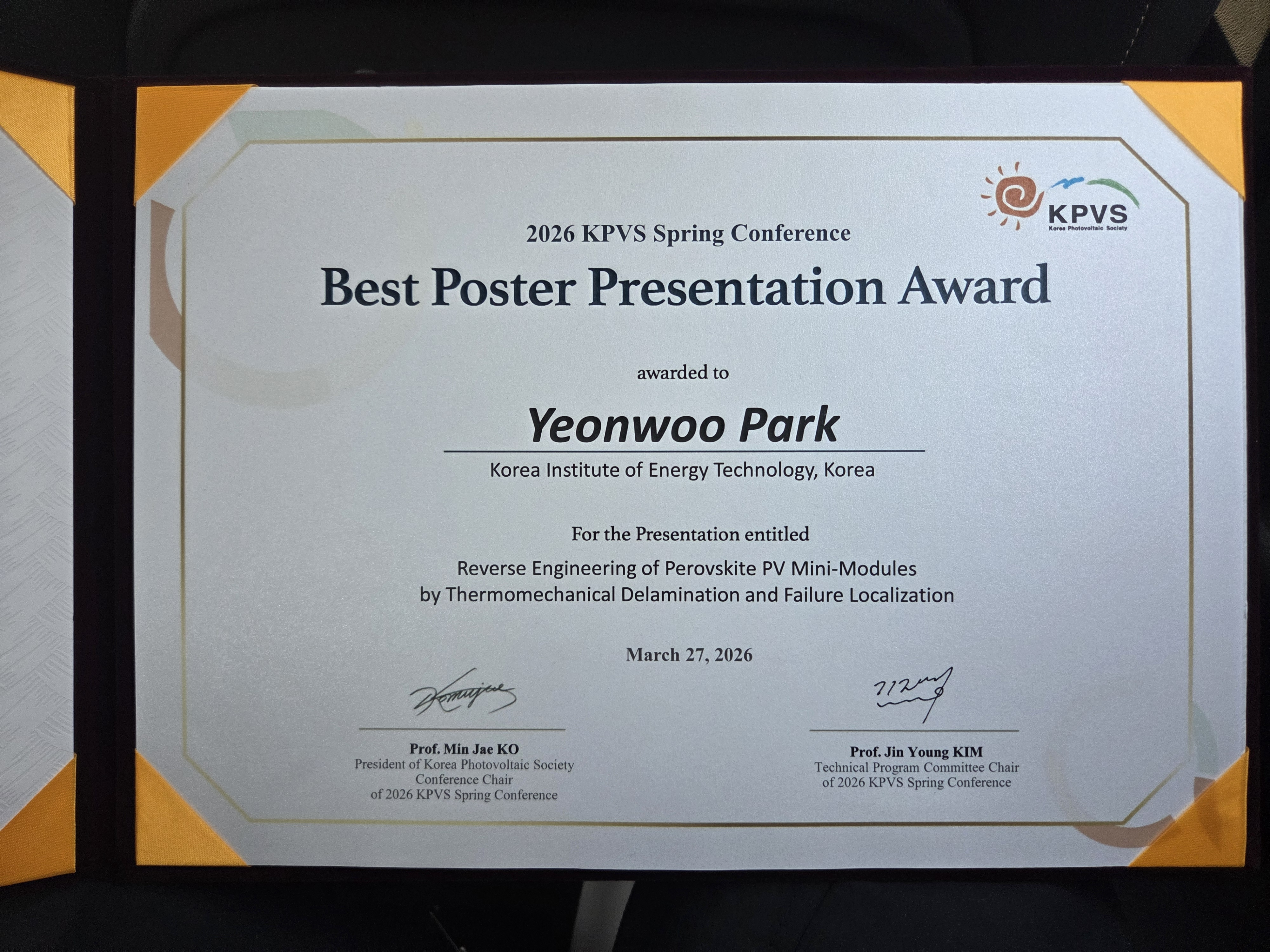 [2026, Mar.] KPVS 2026 in Busan - Best Poster Presentation Award!